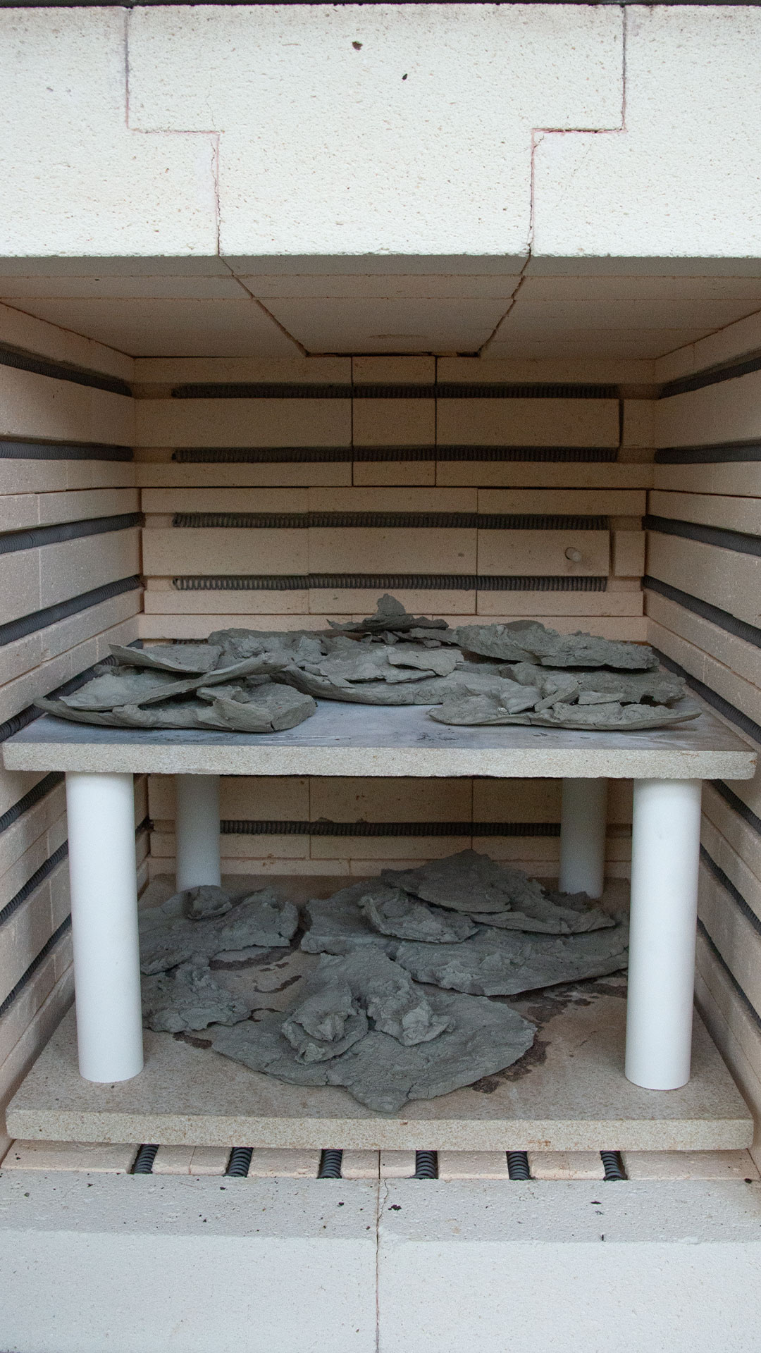 Shoreline is an intervention that restitutes the space taken by human caused dead zones in the Baltic Sea. Native coastal clay is vitrified to create buoyant platforms which are suspended above the oxygen deprived seafloor. The platforms give ground space to seaweeds and seafloor-dwelling creatures which are imperative to the local ecosystem. To passively observe this ecological culture change, Shoreline employs a hydrophone to record a continuous full spectrum soundscape. The resulting audio spectrogram contains audio patterns of the ecosystem’s constituent organisms. Using patterns from isolated recordings, these organisms can be identified on Shoreline’s ongoing spectrogram. Changes in these patterns, their frequency, and their volume describe how the ecosystem develops.